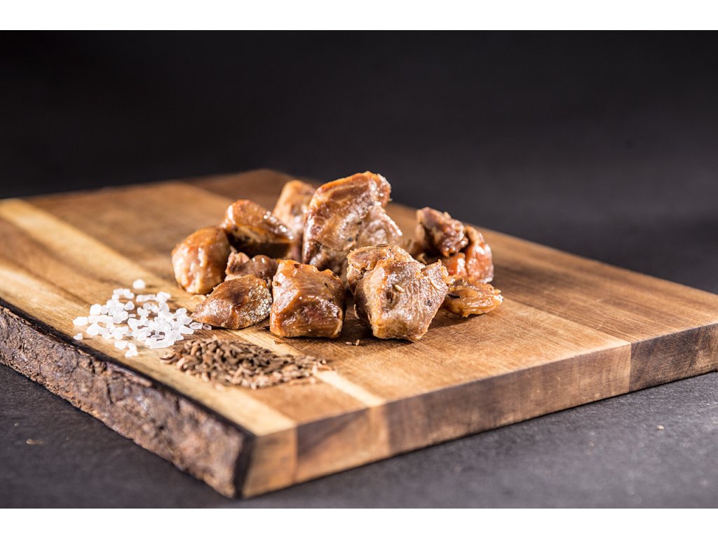 Vepřové maso - plec (99%), sůl, kmín (0,3%).