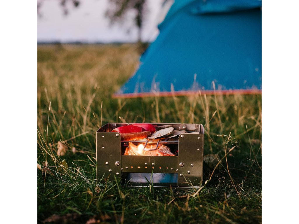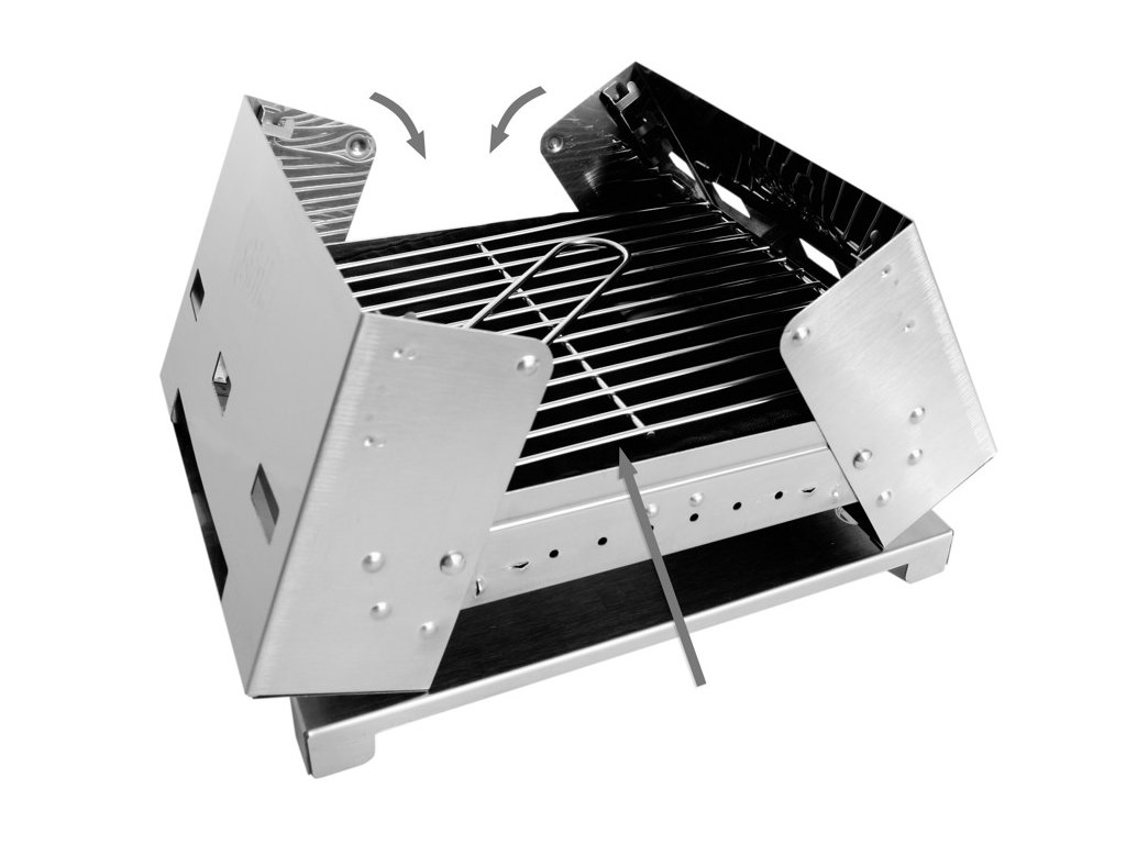 BBQ přenosný gril na dřevěné uhlí se lehce složí do malého transportního obalu. BBQ Gril z nerezové oceli s praktickým nepromokavým obalem na uhlí a taškou na složený gril s popruhem na rameno. Gril je vhodný pro kemping, piknik i zahradu.