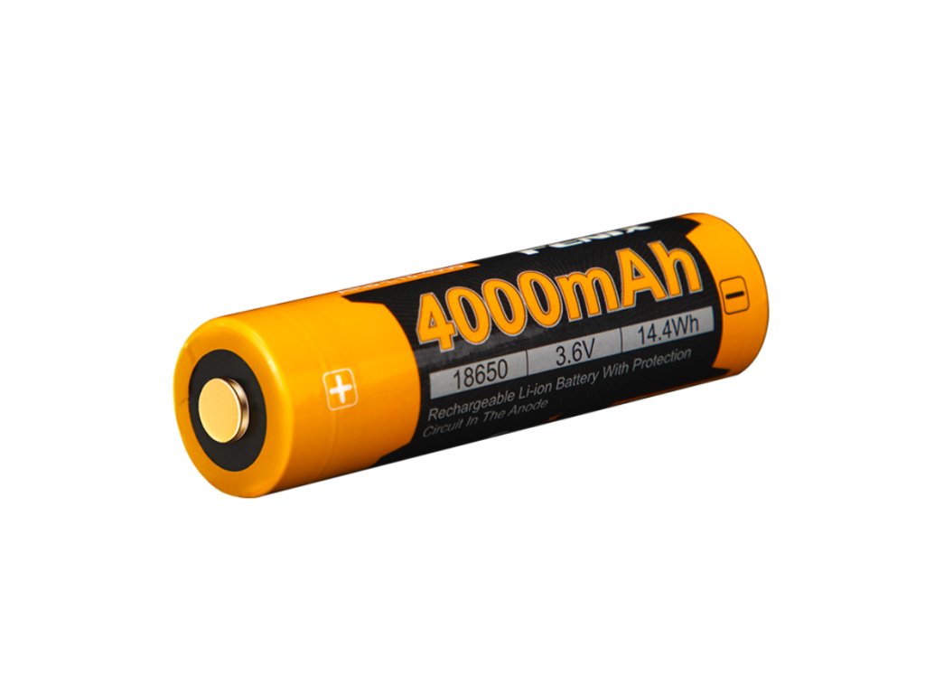 Fenix 18650 nabíjecí baterie Li-Ion s vysokou kapacitou 4000 mAh. Nabíjecí baterie Fenix 18650 netrpí samovybíjením ani paměťovým efektem. Obsahuje ochranou elektroniku zabraňující přehřátí při přílišném odběru, zkratu, přebití nebo úplnému vybití.