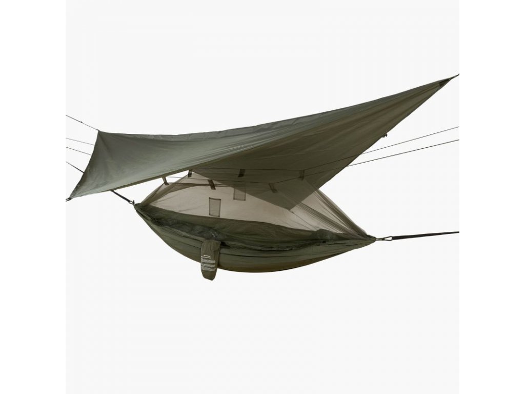 Hamaka s moskytiérou a ochrannou stříškou (tropikem) vás spolehlivě ochrání před deštěm, padající rosou i před nepříjemným hmyzem. Odolnost tropika je 2000 mm vodního sloupce. Malé přepravní rozměry, nízká hmotnost a snadnost použití z ní dělají ideálního společníka i na několikadenní expedici.