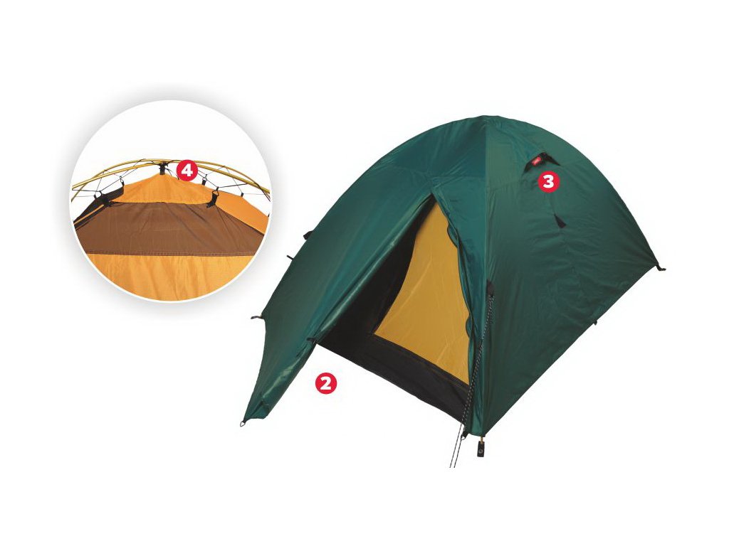 Stan je na pruty zavěšen pomocí napínacích šňůr a háčků. Vnitřní stan má vchody kryté jemnou síťovinou pro lepší větrání a ochranu před hmyzem. Ve vrcholu vnitřního stanu je rovněž větrací otvor krytý jemnou síťovinou. Tropiko stanu je přetaženo přes konstrukci a uchyceno na konec prutů. V přední části stanu je malá apsida pro uložení věcí. Kotvící úchyty jsou na hranách a ve středech stran tropika. V horní části tropika jsou dva větrací vikýře. Mezera 6 cm mezi vnitřním stanem a tropikem dává lepší tepelnou pohodu a zmenšuje orosování.