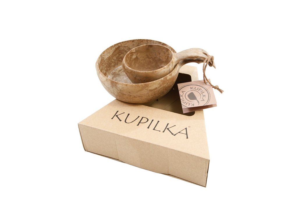 Parádní sada Kupilka Kuksa 210 ml a miska 550 ml v praktickém outdoorovém setu. Extrémně odolný hrnek a miska jsou vyrobeny z termoplastického materiálu složeného z borovicového dřeva a plastu. Kupilka odolá teplotám -30 až +100°C a je vhodná i pro mytí v myčce.