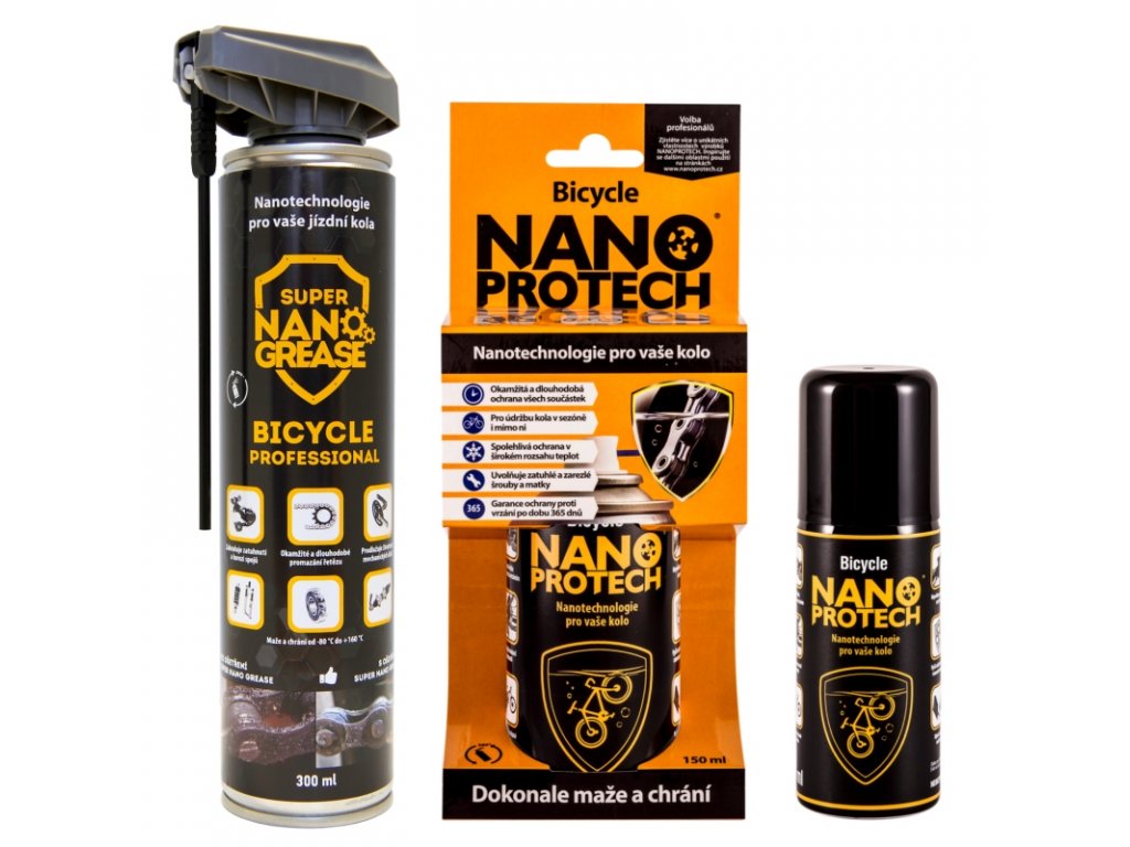 Nanoprotech Bicycle 75 ml - univerzální přípravek na bázi nanotechnologie pro údržbu kol. Promazává a chrání před korozí kovové součásti kola a prodlužuje jejich životnost. Nanoprotech Bicycle je ideální na ošetření řetězu, bowdenů, přehazovačky, os pedálů, šroubových spojů, ale také veškerých pryžových těsnění.