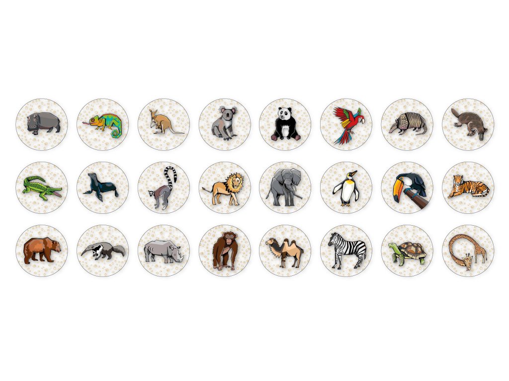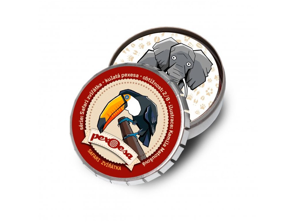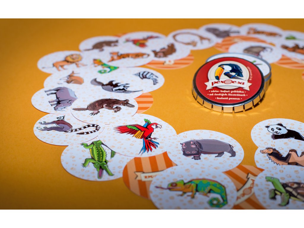 PexOesa Zvířáka jsou kulatá pexesa s motivy ptáků, hadů, sudokopytníků, vačnatců a jiných zvířátek z Afriky, Ameriky, Austrálie atd. Pexoesa jsou ručně vyráběná pexesa od českých ilustrátorů zabalená do designové krabičky, ideální na cesty. Jednoduchá obtížnost 2/8 vhodná pro děti i dospělé.