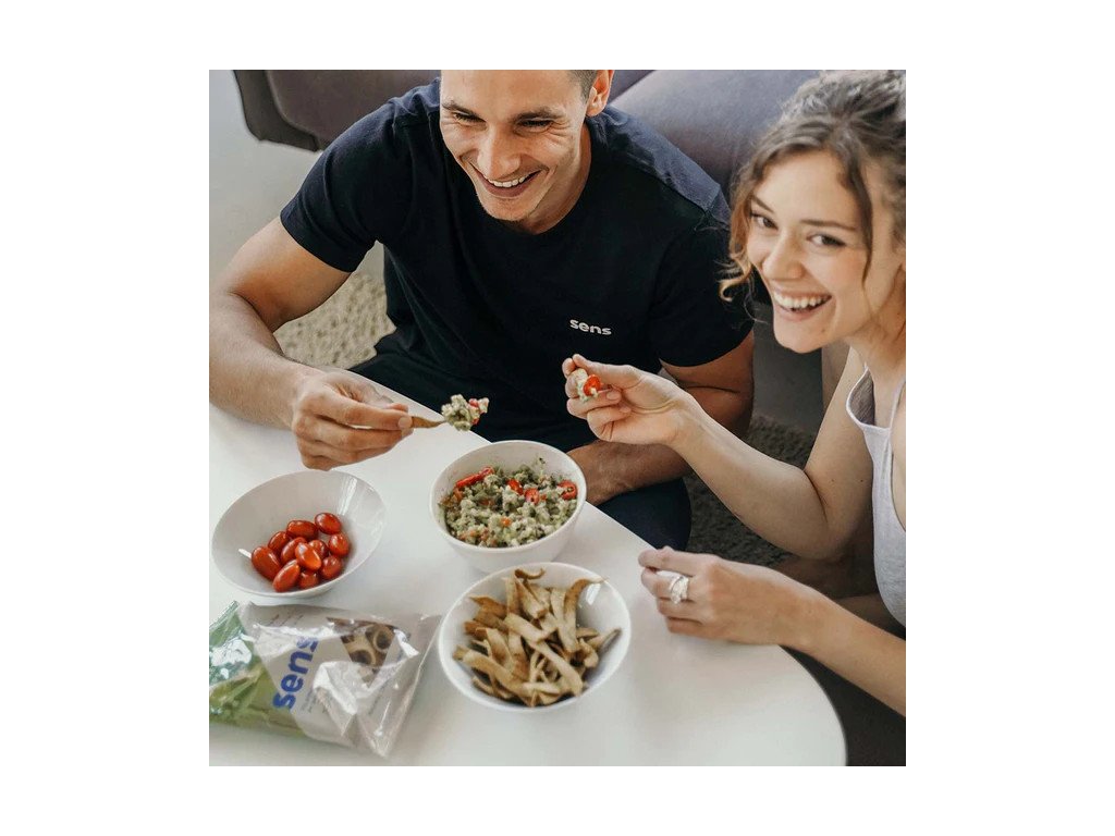 - Standardní balíček brambůrek je jen pytlíček prázdných kalorií. Klasické chipsy jsou plné tuku a soli, ale výživovou hodnotu nemají téměř žádnou. Sens hrachové chipsy s cvrččím proteinem obsahují 20 g kvalitních bílkovin a k tomu ještě 8 g vlákniny. Jsou tedy výživově mnohem vyváženější a přitom stále plné chuti. Palmový olej nebo nekvalitní olej v nich nehledejte. V Sens používají pouze kvalitní slunečnicový olej.