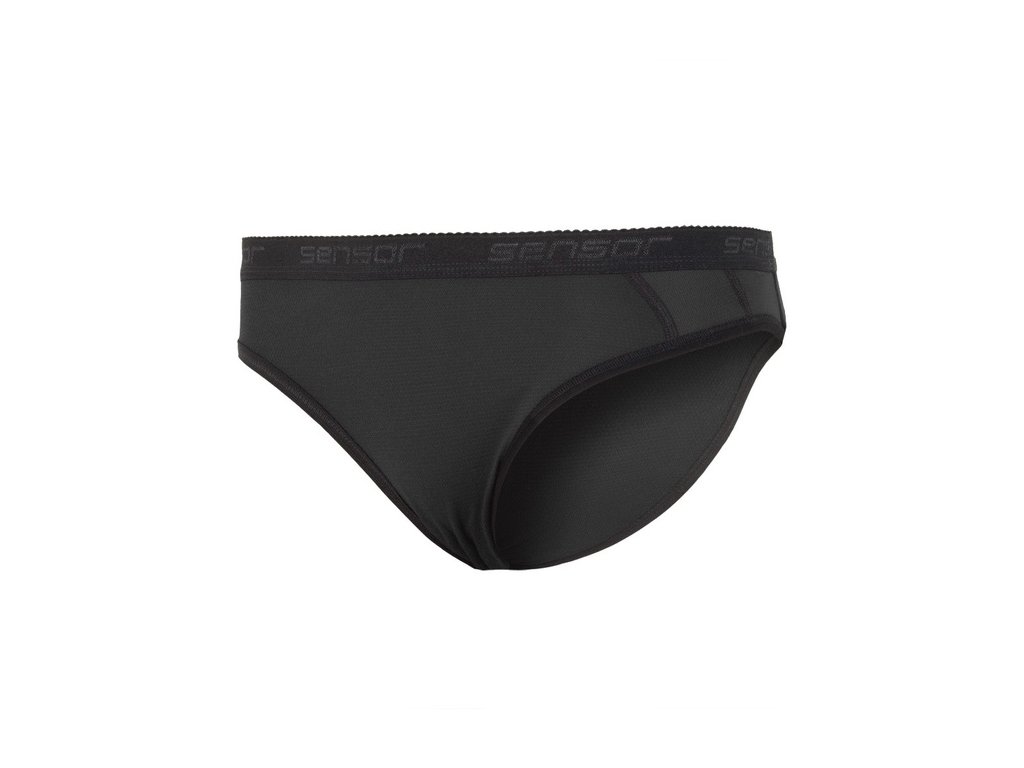 Funkční dámské kalhotky Sensor Double Face. Oboustranný materiál z jedné strany uvolňuje přebytečné teplo od těla a z druhé strany odráží tělesné teplo zpět. Elegantní černá barva. Kalhotky pro sport i město.