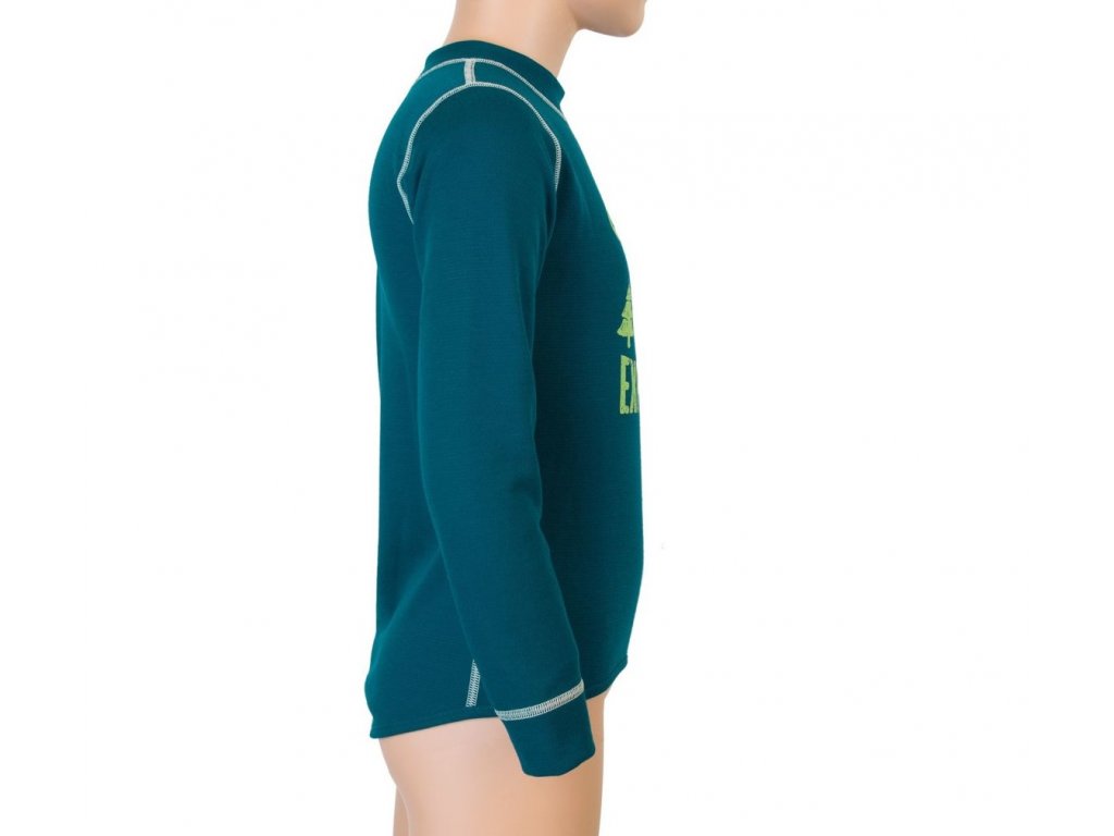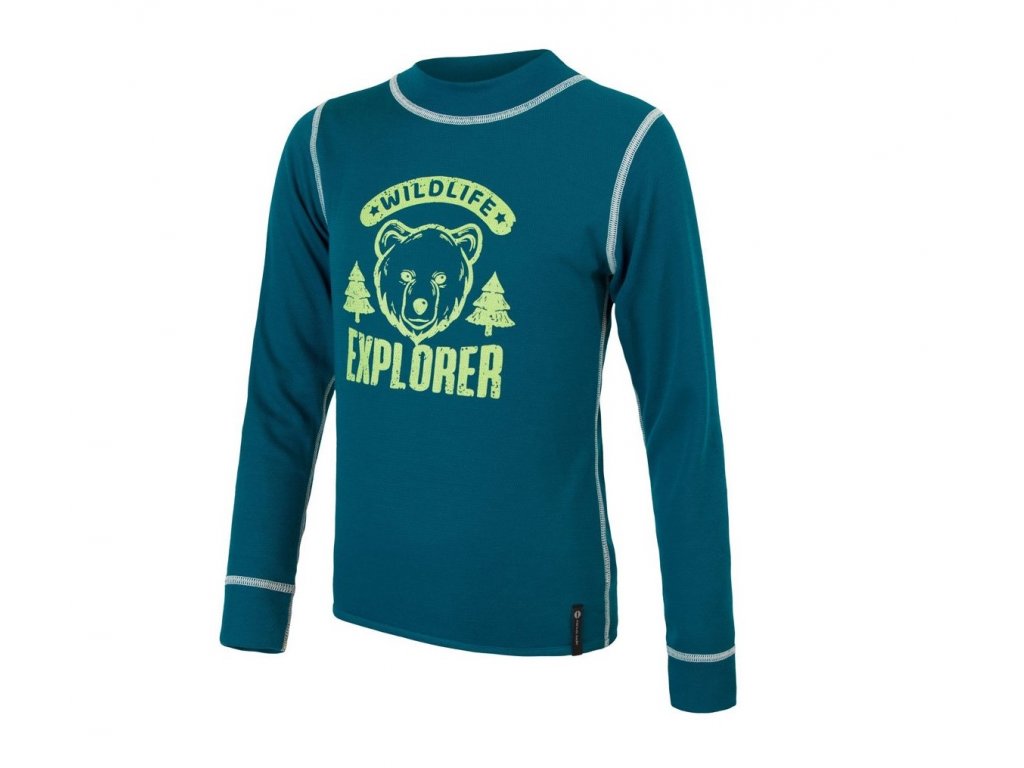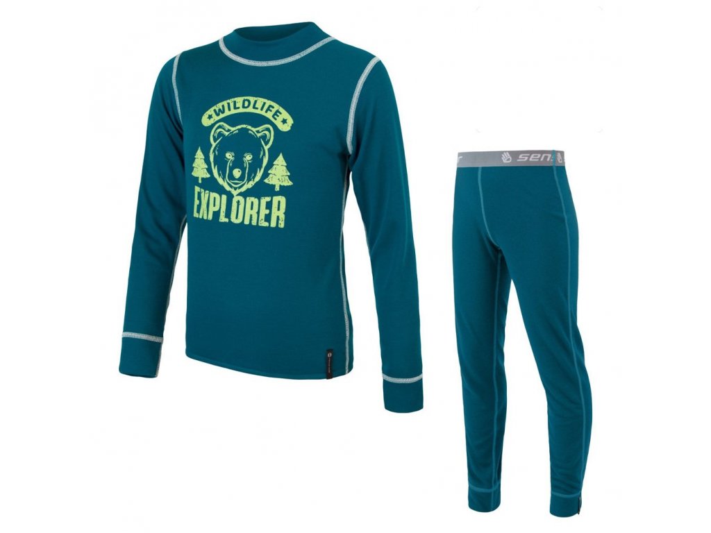 Dětský set Sensor Double Face Wild safír obsahuje funkční dětské triko a spodky, které dítě může nosit téměř celý rok. Oboustranný materiál z jedné strany uvolňuje přebytečné teplo od těla a z druhé strany odráží tělesné teplo zpět a tím dítě hřeje.