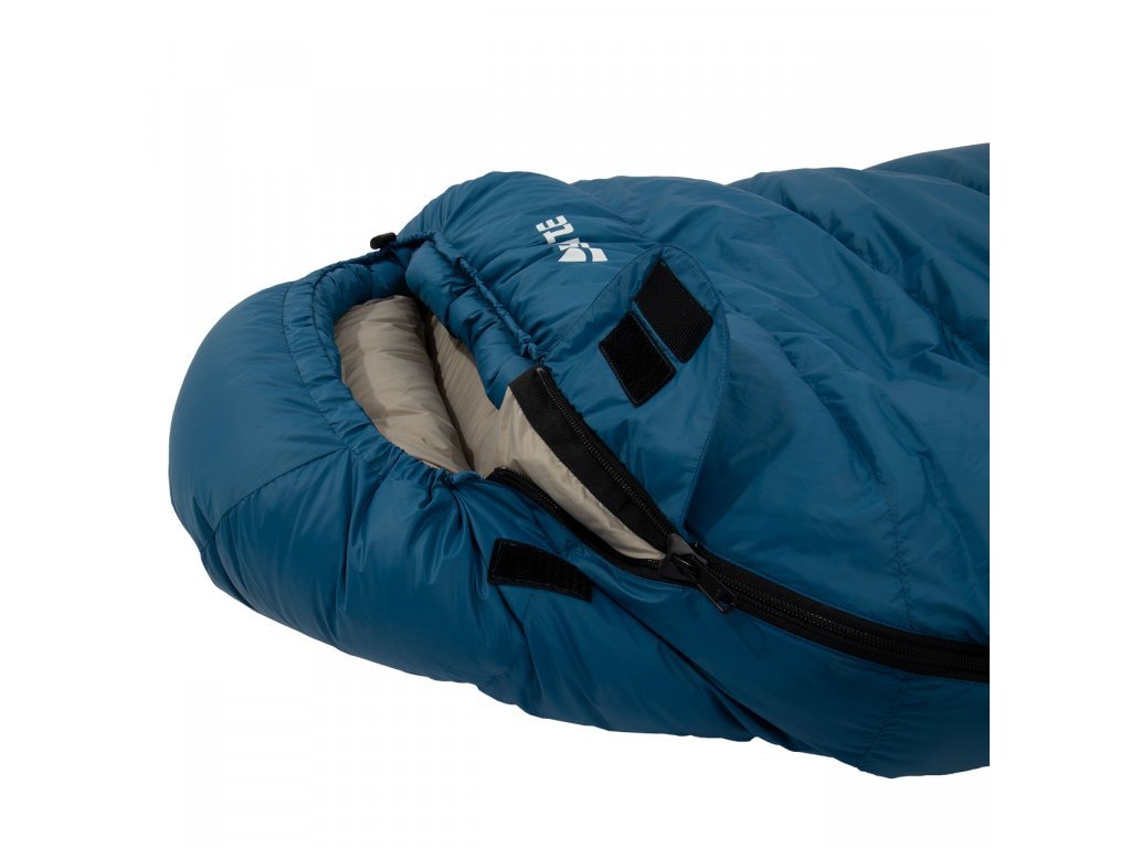 Spacák je vybaven značkovým zipem YKK se speciálním plastovým chráničem, který zabraňuje vniknutí látky do jezdce a samovolnému rozepínání. U hlavy je zip ještě zajištěn klopou na suchý zip, která zamezuje samovolnému otevření zipu.