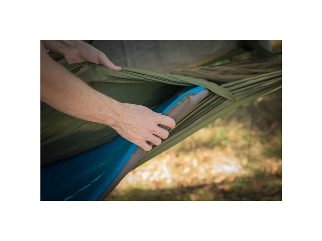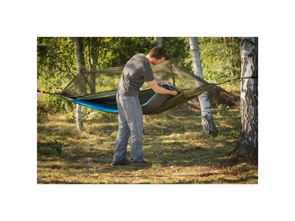 Hamaka s moskytiérou a stříškou Nidus vás spolehlivě ochrání před deštěm, padající rosou i před nepříjemným hmyzem. Odolnost stříšky je 2000 mm vodního sloupce. Malé přepravní rozměry, hmotnost pouze 1,3 kg a snadnost použití z ní dělají ideálního společníka i na několikadenní expedici. Balení obsahuje vše potřebné k napnutí - hamaku, stříšku, napínací šňůry a karabiny.